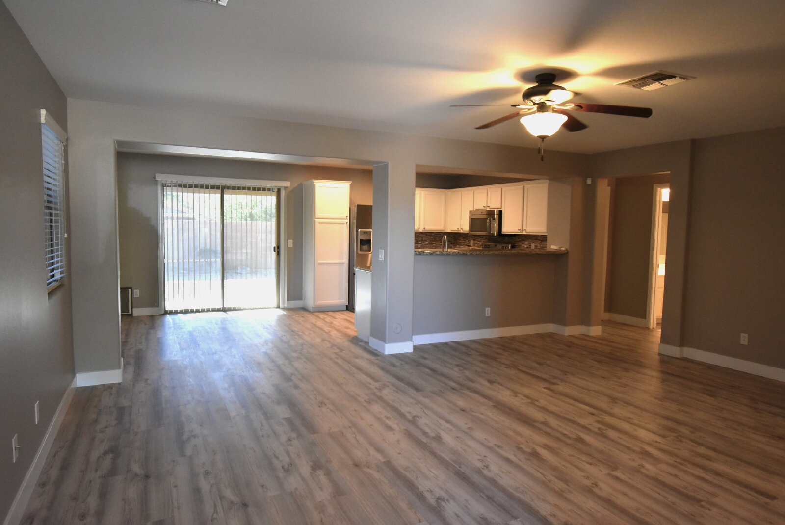 Beautifully updated and move-in ready, this lovely 3-bedroom, 2-bath home with a den/office features stunning faux wood laminate flooring throughout. The kitchen boasts granite countertops and stainless steel appliances, perfect for modern living.