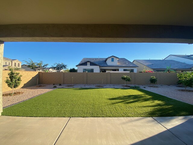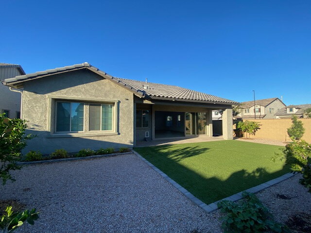 The gourmet kitchen boasts quartz countertops, stainless steel appliances, and sleek finishes. Enjoy easy-care living with turf and desert landscaping—perfect for entertaining or relaxing outdoors.